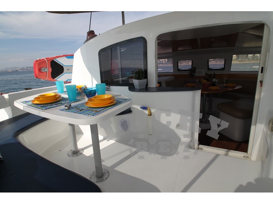 Fans, Cockpit Speakers, Dinghy Inflatable, Outboard engine, Shore Power Connection, Solar Panel, Radio/CD, Cooker with oven, Cutlery, Refrigerator, Sinks, Autopilot, GPS Plotter, Log/Speedo, Main Deck Compass, VHF, Hot Water System, USB plugs, Lazy Bag, Roller genoa, Wheel Steering, Battened main sail, Bathing Platform, Bimini, Deck Shower, Electric Windlass, Gangway, Anchor, Dinghy with Outboard Motor, Echo Sounder, Life jacket, Linen, Nautical charts and nautical guide, Pillows and blankets, Radio Cass/Radio/CD Player with Speakers in Saloon & Cockpit, Speedometer, Steering, Wind Speed Indicator/Network Wind, Auxiliary anchor, Calibrated anchor chain, Dan Buoy, Distress flares, Fire extinguisher, First aid kit, Floating line, Lifebuoy, Liferaft, Main anchor, Safety harness, Snorkel Equipment
