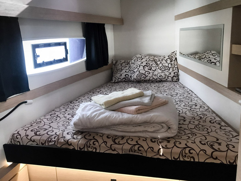 Multifunction touchscreen display B&G Zeus T7 , Fenders, Mooring lines, Windlass Cockpit Mounted Remote, Water Tank, Fuel Tank, Multifunction touchscreen display B&G Zeus T12 (with turning console), AIS receiver, 3 burners gas stove, Hairdryer, Iron, 12V sockets, 220V sockets, Audio, Electric fridge, Electric toilet, Fully equipped galley, Inverter, Bimini, Cockpit cushions, Cockpit shower, Cockpit speakers, Cockpit table, Dinghy, Self tailing winches, Snorkeling gear set, Sprayhood, Swimming ladder, Adriatic sea pilot, Autopilot, Binoculars, Depth sounder, Full sets of charts, GPS, Plotter, Speed log, VHF, Windex, Fire extinguisher, Fire plant, First aid kit, Life jackets, Life raft, Thermo protective aid, Roller Genoa, Radar B&G 4G, Full batten mainsail