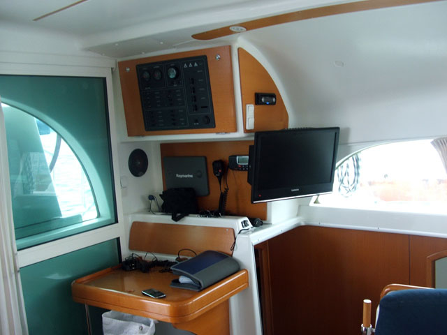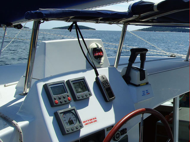 Fullbatten main sail, Fridge w. Ice comp., TV with DVD player, WLAN, Generator, Heating with AC, Steering Wheel, Furling genoa, Rudder, Autopilot, Tridata , Windistrument, Bilge Pump, Bimini, Cockpit Cushions, Cockpit table, Divider/Compass, Electric Windlass, Gass Bottles, Helm station, Outside shower (warm water), Outside speakers, Anchors (main & reserve), Radar Reflector, Winch Handles, Wind Direction Indicator, Fenders, Tender/Dinghy, Argola, Boat hook, Gangway, HS life buoy + light, Pump, Shore power & mooring ropes, Water hose, VHF, Battery Charger, Sockets 220V, Service batteries 3x140 Ah, Polstery , Life Belts, Life jackets, Binocular, Fire Extinguishers, First Aid kit, Flares set, Flashlight, Fog Horn, Hand Bearing Compass, Navigation Charts & Pilots, Navigation Tools, Repair Kit - Tools, Life Raft, Radio with CD, MP3, AUX, GPS Chartplotter, Air Conditioning, Ice box, Lazy bag