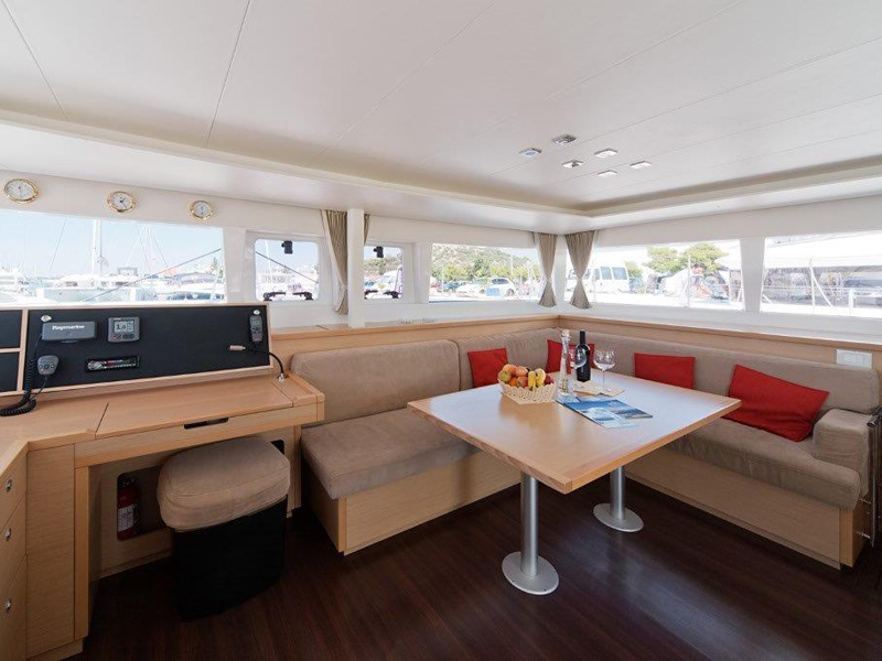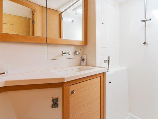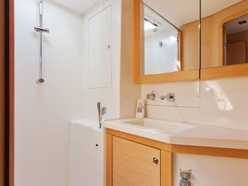 Fuel funnel, Spare engine belt, Spare engine oil, Spare impeller, Start battery, Battery charter 220 V, Consumption battery, E - switch / fuses, Main switch, Shore power cable 220 V, Sockets 12/220 V , Spare fuses, Boat hook, Bow anchor + 50m chain, El. anchor windlass, Gangway, Mooring rope, Stern anchor, Fenders, El. bilge pump, Emergency signals, Fire extinguisher, First aid kit, Flashing buoy, Fog horn, Hand bilge pump, Life belts, Life jackets, Life raft, Life ring, Mast chair, Spare tiller, Tools and spare parts, Torch, Autopilot, Baro/Hygro/Thermometer, Binoculars, Echo sounder, GPS plotter, Hand bearing compass, Navigation charts, NAV - set, Pilot book, Search light, Speed/log, Steering compass, Steering wheel, UKW, Wind instrument, Wind-vane, Blankets, pillows, Boarding ladder, Bucket, bowl and brush, CD/DVD radio, Cleaning and washing set, Cockpit shower, Cockpit table, Diesel can - empty, Dinghy, paddles, pump, Dishes, Fresh water pump, Gas bottle, Gas stove with oven, LCD TV 19", Linen, Litter bag, toilet paper, Mobile phone (netted), Outboard engine, Rerfrigerator 12V, Sink, Water heater, Water hose, Hard top, Cockpit light