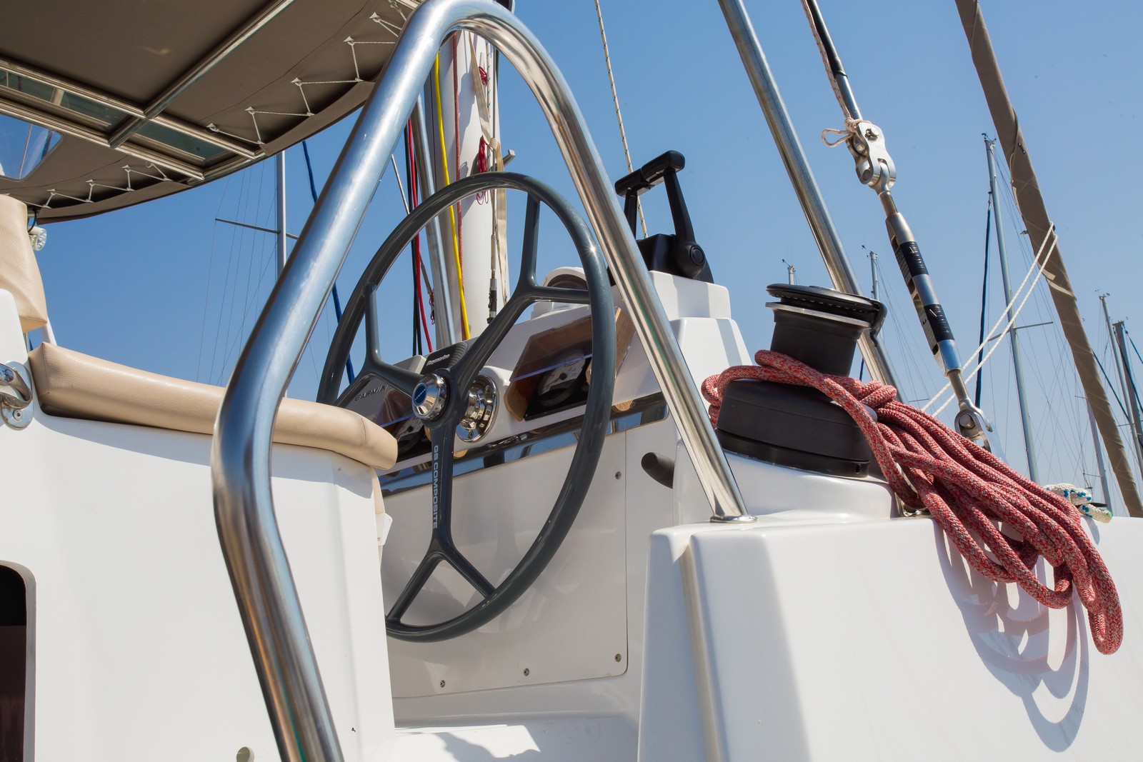 Battened mainsail, Bimini top, Electronic instruments, GPS plotter on cokcpit, Outboard motor (extra charge), Radio CD player, Solar panel, Sprayhood, Autopilot 7000, Refrigerator, Deck Shower, Solar Panel, Life jacket, Main Sail Full Batten/Lazy Jack, Nautical charts and nautical guide, Spray hood, Main Deck Compass, Depth Gauge, Lazy Bag, Lazy Jack, First aid kit, Fire extinguisher, Auxiliary anchor, Distress flares, Liferaft, Main anchor, Safety harness, Air conditioning (extra charge), Generator, Log/Speedo, Anchor, Full batten Main Sail, Bimini, Electric Windlass, Hot Water System, Heating, Cooker with oven, Cockpit Speakers, Wind Speed Indicator/Network Wind, Speedometer, Radio/CD, Echo Sounder, Autopilot, GPS Chartplotter, Dinghy Inflatable, Steering wheel, Genoa Furling