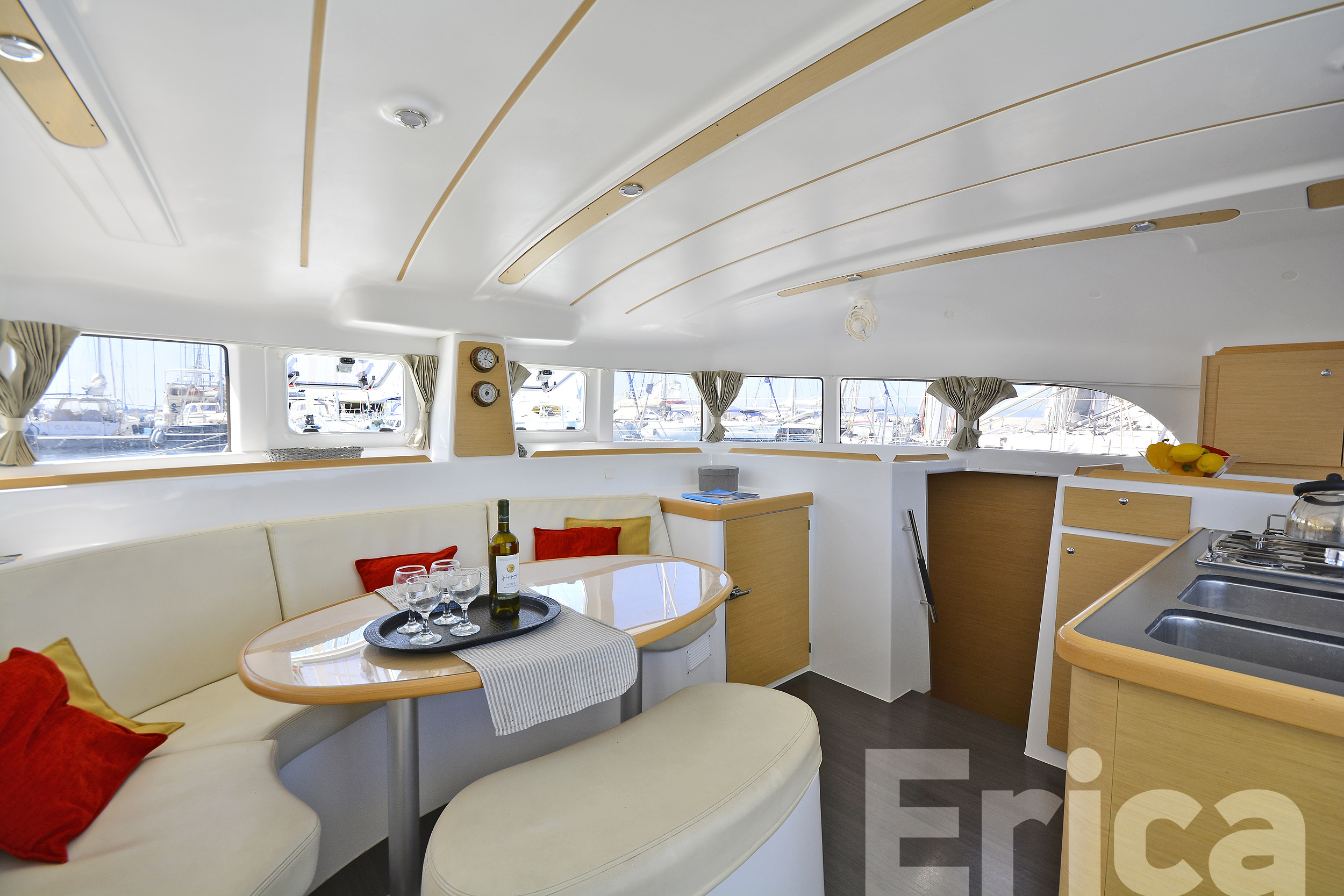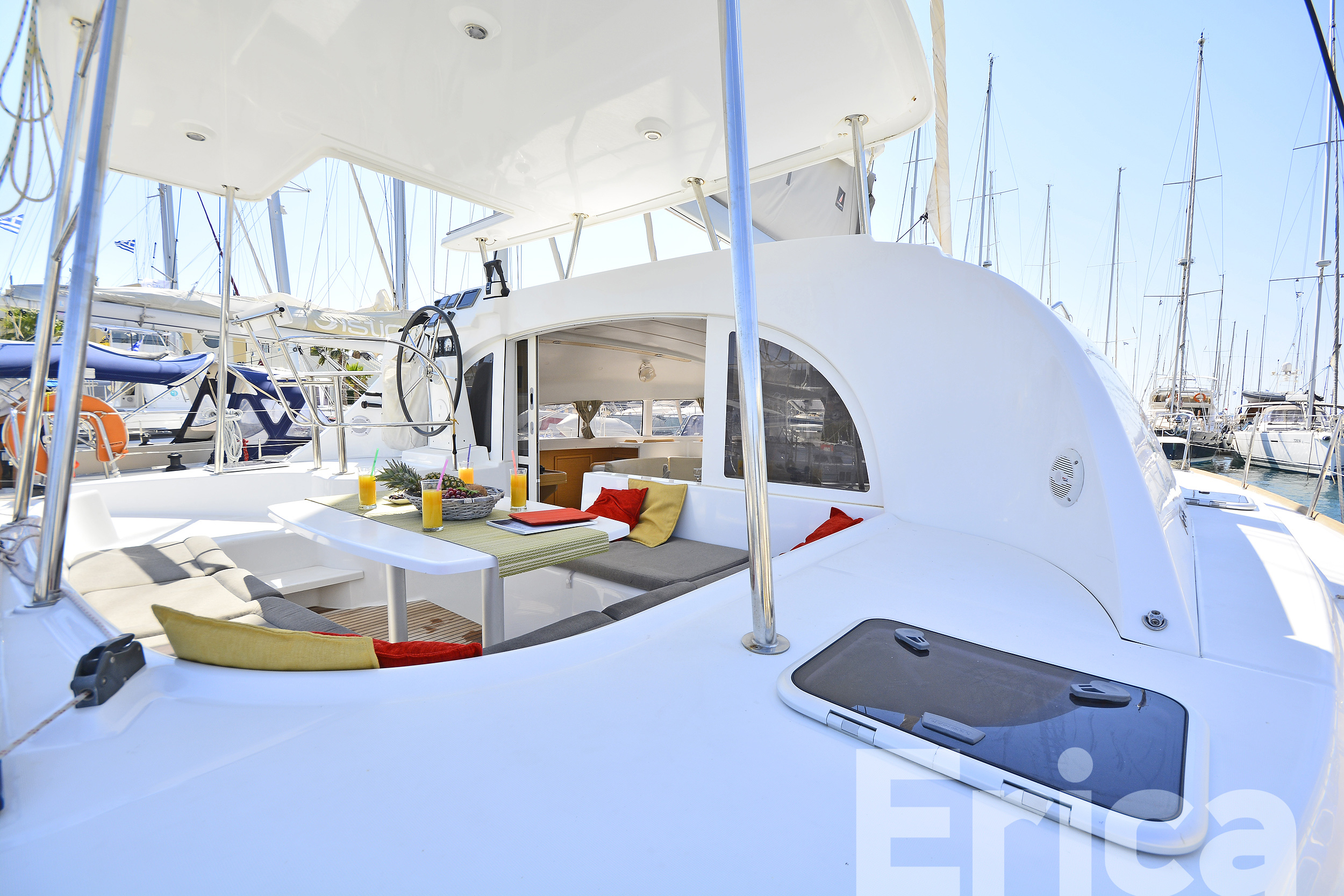 ANCHOR WINDLASS & HANDLE, COCKPIT CUSHIONS, COCKPIT TABLE, DINGHY, DOOR PANELS-KEYS, ENGINE OIL, FENDERS, GANGWAY, GAS BOTTLES, MAIN ANCHOR-CHAIN, MOORING LINES, OUTBOARD MOTOR, SECOND ANCHOR, WINCH HANDLES, BREAD KNIFE, CAN OPENER, CORK SCREW, CUPS, DINNER PLATES, DUSTPAN & BRUSH, ELECTRIC FRIDGE, FILTER COFFEE POT, FORKS, FRUIT PLATES, FRYING PANS, GAS STOVE, GLASSES, KETTLE, KNIVES, SALAD BOWL, SAUCE PANS, SOUP PLATES, SPOONS, TEA SPOONS, TEA STRAINER, TOILET BRUSH, AUTOPILOT, BINOCULARS, COCKPIT COMPASS, DIVIDER, ECHO SOUNDER, ERASER, GPS, GREEK WATERS PILOT, HAND BEARING COMP, PARALLER RULER, PENCILS, PLOTTER, SEA CHARTS, VHF, WIND INSTRUMENTS, 220 VOLT SOCKETS, BATTERY CHARGER, BOW CABINS, HOLDING TANKS, PILLOWS, MUSIC PLAYER, BLACK BALL, EMERGENCY HELM, EPIRB, FIRE EXTINGUISHERS, FIRST AID KIT, FLOATING LIGHT, FOG HORN, HORSESHOE LIFEBUOY, LIFE JACKETS, LIFE RAFT, SAFETY BELTS, TORCH LIGHT, BIMINI TOP, FURLING GENOA, SHEETS, SPRAYHOOD, Autopilot, Bimini, Dinghy with Outboard Motor, Echo Sounder, GPS, Hot Water System, Radio/CD, Speedometer, Spray hood, VHF, Blankets, GPS IN COCKPIT, ELECTRIC TOILETS, SOLAR PANELS, USB CONNECTION