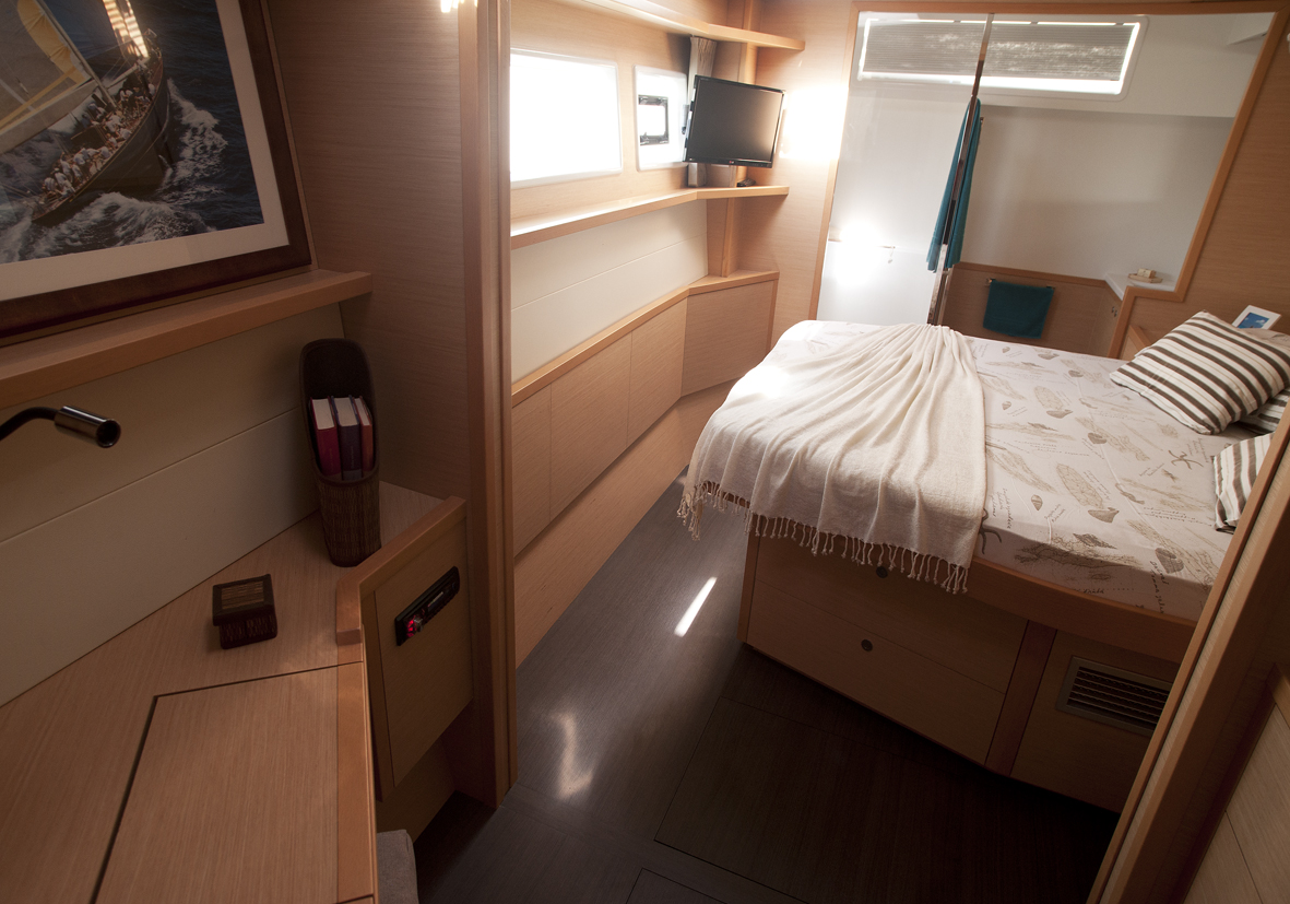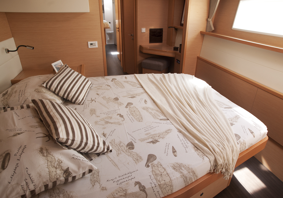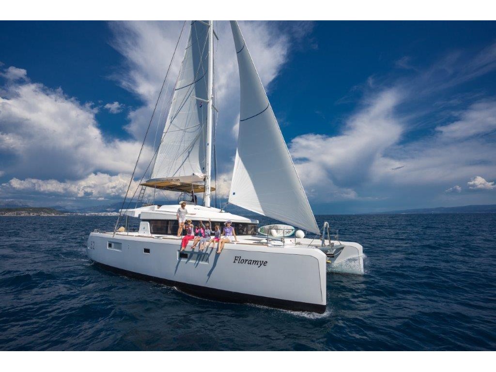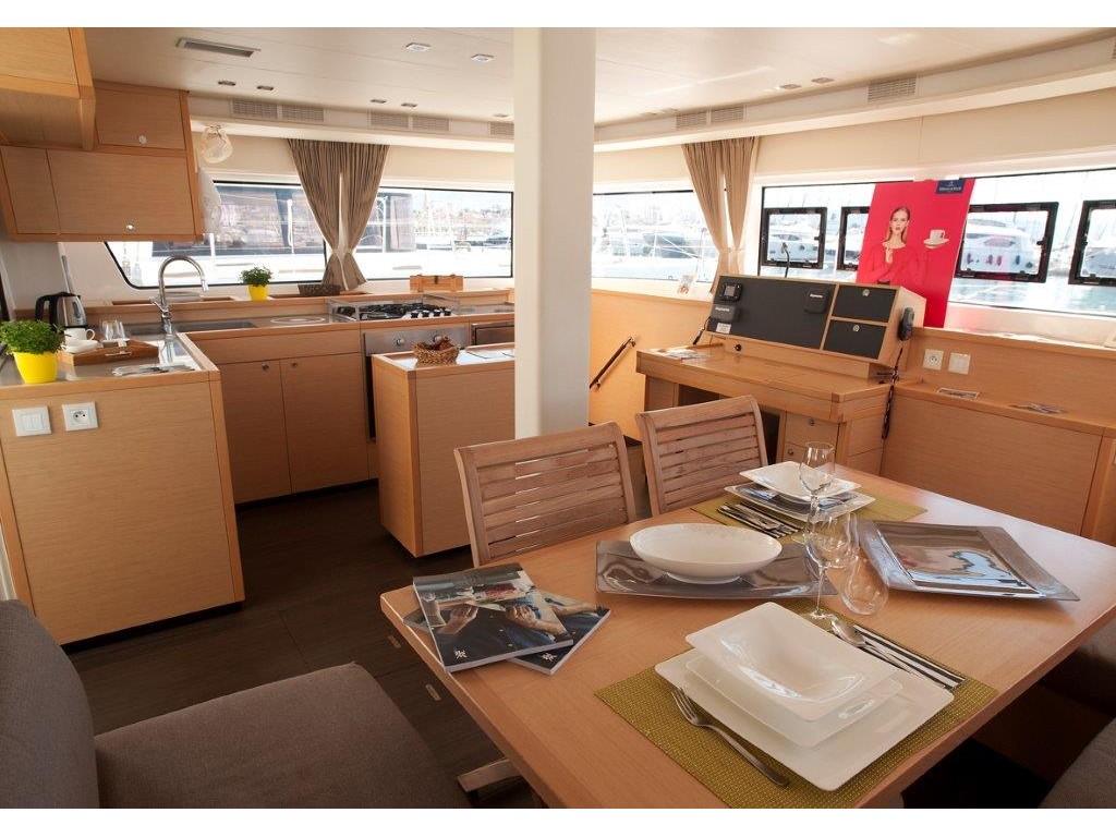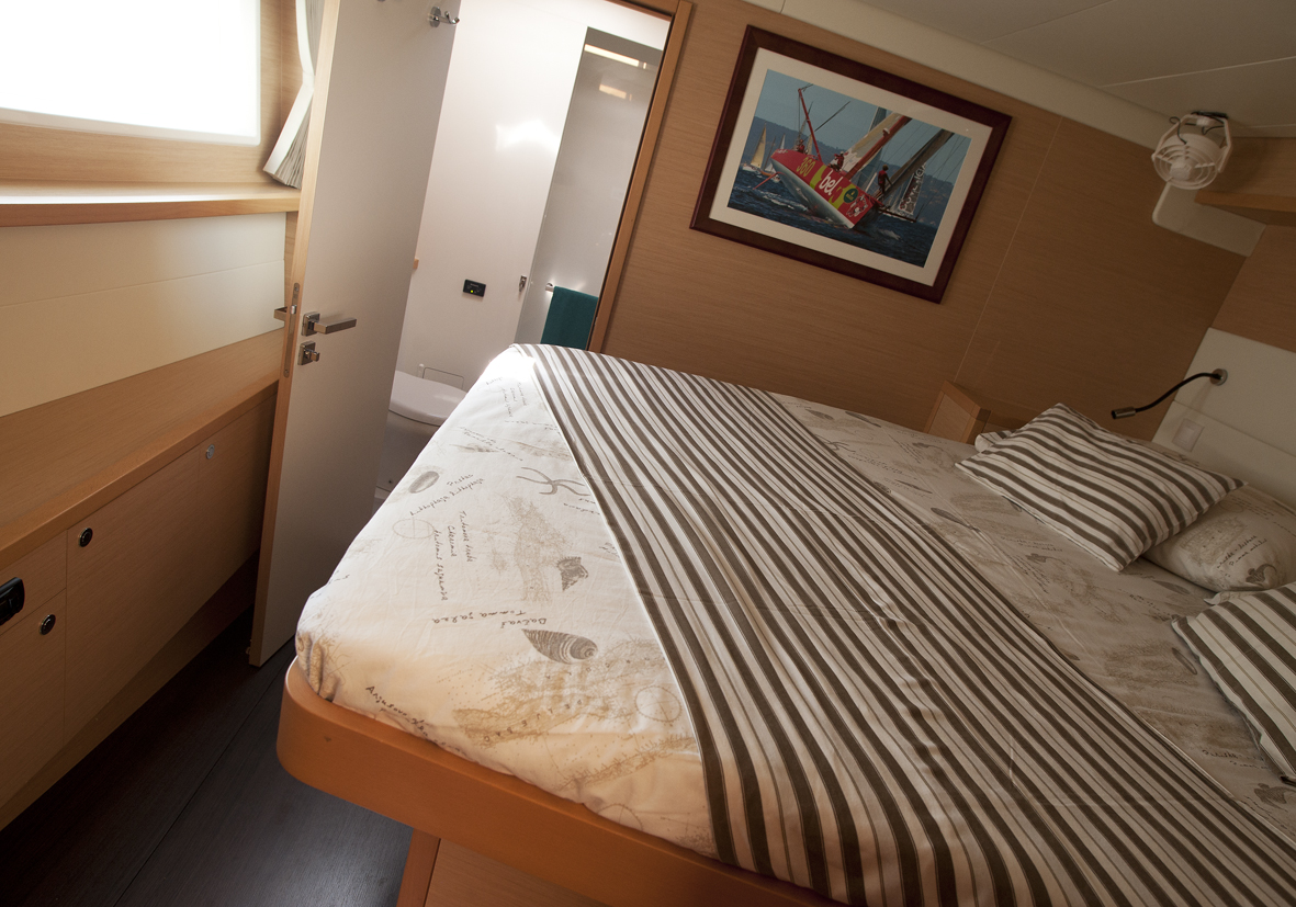 Dinghy Rigid, Outboard engine, 220 V shore connection, electrical toilet, Engine Battery (in Ah.), Generator, Service Battery (in Ah.), Shore Power Connection, Cockpit Speakers, Radio/CD, TV + DVD, Cutlery, dishes, icemaker, Refrigerator, Sinks, Autopilot, GPS Chartplotter, Log/Speedo, Main Deck Compass, Air Conditioning, Hot Water System, Standard main sail, Rollgenua, Bathing Platform, Cockpit Fridge, Electric Windlass, Gangway, Bow Thruster, hand towels, Linen, underwater lighting, Auxiliary anchor, Calibrated anchor chain, Distress flares, Fire extinguisher, First aid kit, Lifebuoy, Liferaft, Main anchor, Safety harness, 2 person Kayak, S.U.P., Snorkel Equipment, water ski, beach towels, Life jackets, water heater, Watermaker, Bimini, sprayhood, teak cockpit, VHF, Heating, Freezer, gas stove, battery charger, Nautical charts and nautical guide, Pillows and blankets