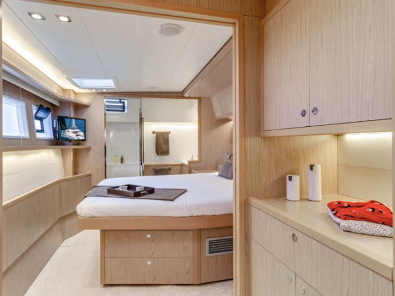 Aircondition, Coffee machine, Dinghy, Dishwasher, Hydraulic gangway, Ice maker, Inverter, Microwave, Oven, Refrigerator, Snorkeling equipment, Stereo CD/DVD, SUP, TV in saloon and all cabins, Desalter, Fans in salon and cabins, Generator 17kw, Tender, Cockpit Fridge, GPS, Full batten main sail, Furling genoa