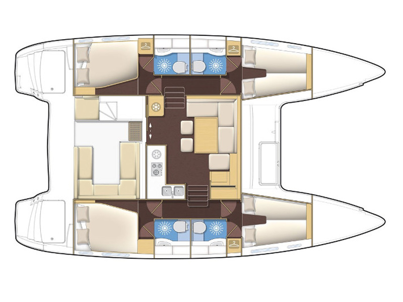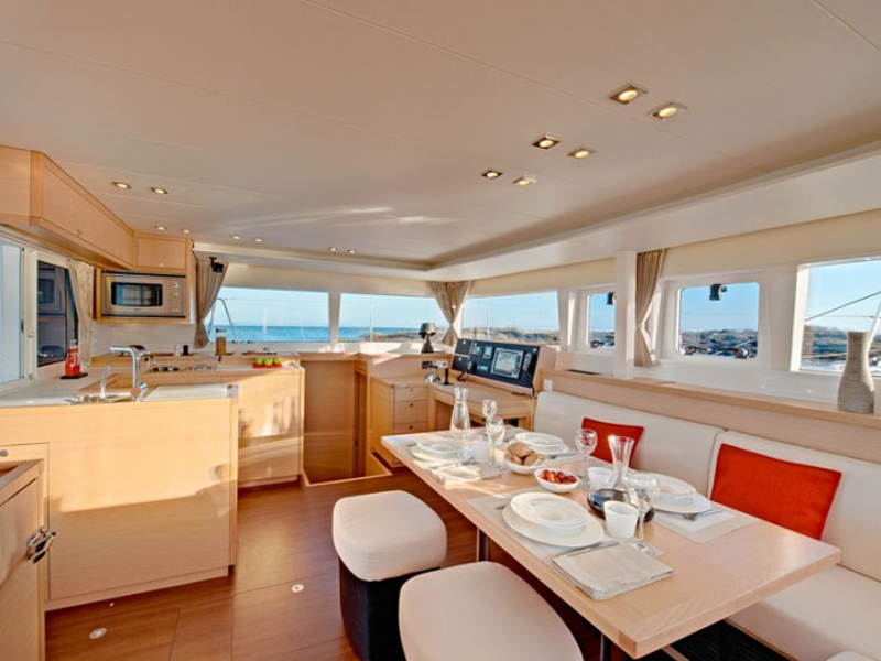 Electric winches, Lazy bag, Autopilot, Binoculars, Compass, Cruising guides, GPS chart plotter-cockpit, Nautical charts, Navigation (Nautical) charts and nautical guide, Navigation set, Radar reflector, Tridata, Wind instrument/Anemometer, 12 x Life belts (Safety harness), 12 x Life jackets, Distress flare box, Emergency tiller, Fire extiguisher, First aid kit, Fog horn, Life buoy + Flashing light, Liferaft, Torch, 14 x 220 volt socket, 2 x VHF radio, 3 x Service batteries, Battery charger, Bilge pump - Electric, Inverter, Shore connection 220 V, 2 x Round/globular fender, 3 x Winch handles, 8 x Fenders, Anchor chain counter, Black Water Tank, Boat hook, Cockpit/stern, outside shower, Cockpit cushions, Cockpit table, Electric anchor windlass, Gangway, Hard Top Bimini, Main anchor, Mooring ropes, Spare anchor (Reserve, Auxiliary anchor), Sun deck, Teak cockpit, Water hose, 2 x Freezer, 2 x Gas bottles, Gas cookers (stove), Ice box, Kitchen utensils (Galley equipment, cutlery), Oven, Refrigerator, 4 x Electric toilet, Bed linen, Bilge pump - mechanic, Blankets, Diesel heater with water circuit, Hand - held compass, Pillows , Salon, Outside speakers, Radio CD/mp3 player, USB, AUX input, W-LAN GRATIS, Dinghy, Flashlight, Pump and Repair kit, GPS chart plotter-outside on fly bridge, Radar, Warm water, Self tacking jib